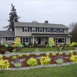 The home owner wanted some color added to the landscape. Drought tolerant plants with year around interest were added, while keeping a few shrubs as well. A new flagstone path was created along with a bubbler fountain by porch.