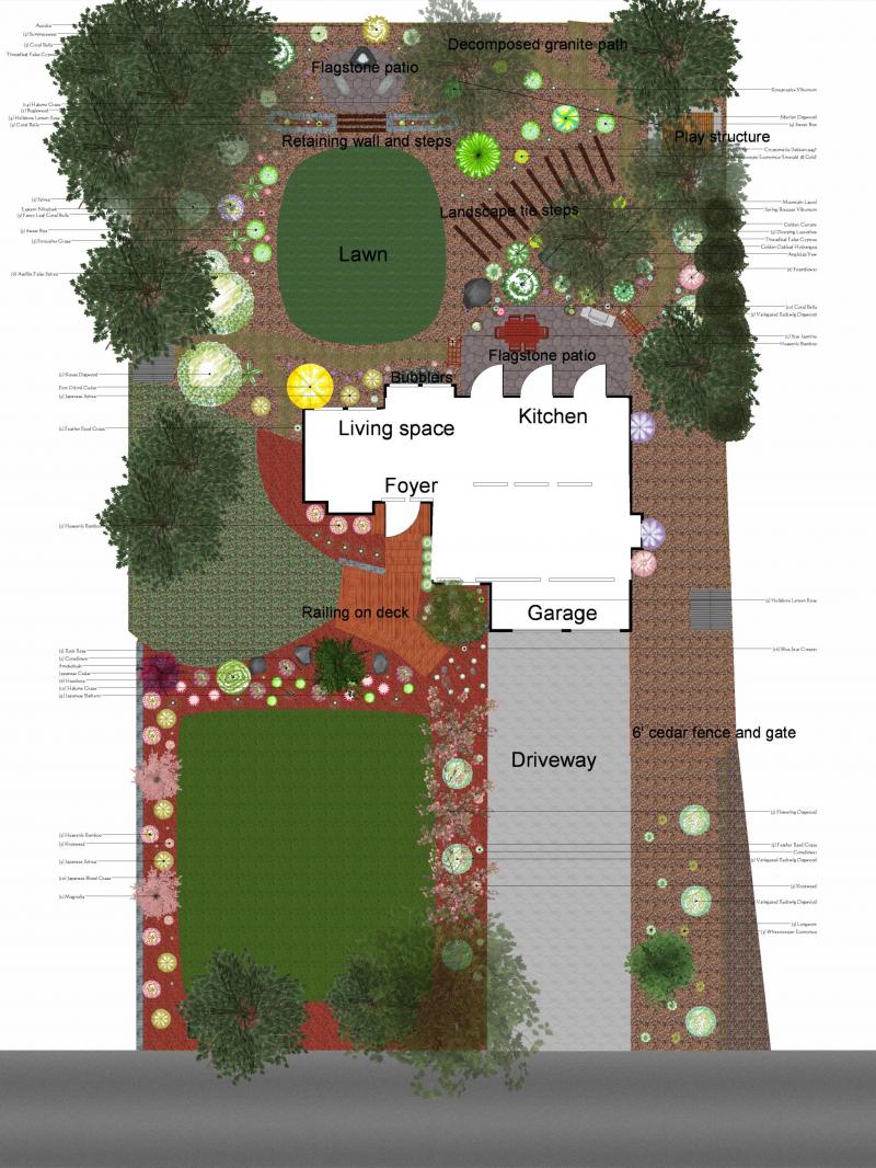 Large Space Design:area of 50 x 100 or greater (typical lot size-front and back yard)